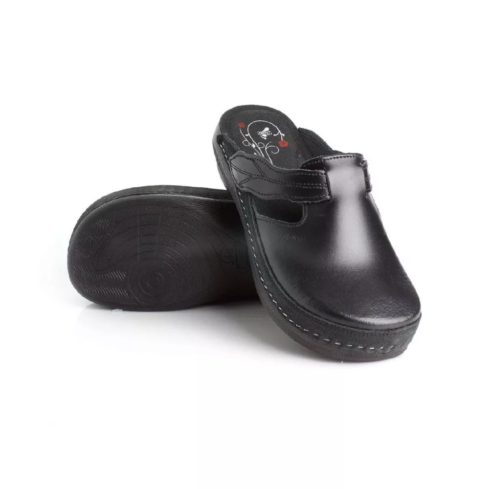 Batz Flower női papucs. 100% valódi bőr felsőrésszel készült női klumpa. Anatómiai kialakítású párnázott talpszerkezete maximális kényelmet biztosít a lábnak. A talpbélés marhabőrből készült, mely maximálisan elszívja az esetleges lábizzadás során keletkező nedvességet. Két színben, fehérben és feketében kapható.