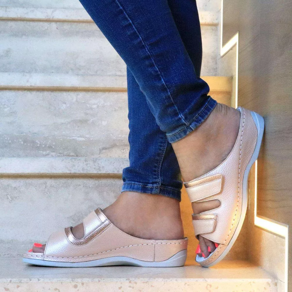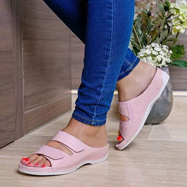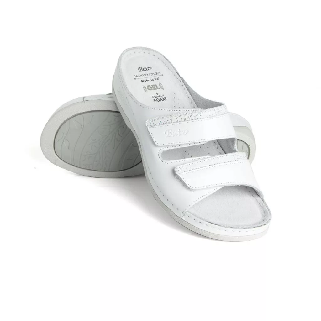 Batz Rea női papucs. Romantikus rózsaszínben integet a kényelem: strapabíró, nagyobb igénybevételt is kitűnően bíró Batz modellről van szó. A sarokrészre puha zselékorongot, az egész talpfelület alá pedig memóriahab réteget tettünk, melytől rugalmas lesz a talprész. Anatómiai lábágy, 2 tépőzáras állítható pánt, és kiváló minőségű bőr gondoskodik a komfortról. Kitűnő szolgálatot tesz egész napos állómunkához – az átlagnál szélesebb lábfejre is tökéletesen idomul.