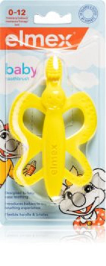 Az elmex baby fogkeféjének és rágóka kombinációja segít a csecsemőknek megszokni a fogmosást, és kellemes érzést biztosít fogzási problémák esetén.
