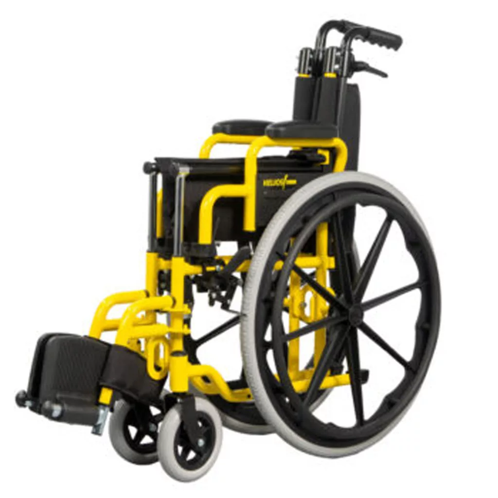 A „HELIOS” gyermek kerekesszék kifejezetten gyermekek szállítására készült. Elősegíti a mozgásukban korlátozott gyermekek mobilitását, és használható kísérő segítségével vagy a gyermek saját erejéből is. Kényelmes, könnyen kezelhető, és biztonságos kialakításának köszönhetően ideális mindennapi használatra.