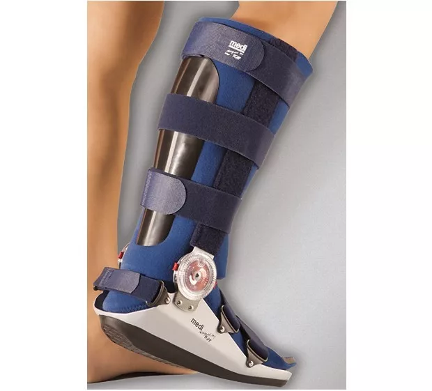 TERMÉK LEÍRÁS: - indikációk: szalagok és lágyrészek posztoperatív kezelésére, valamint fibula (szárkapocscsont) és tibia (sipcsont) törések konzervatív kezelésére, talocruralis izület sérüléseinek kezelésére, lábtő és lábközépcsontok töréseinek kezelésére, peroneus inak korrekciós műtét utáni kezelésére, krónikus szalag instabilitás kezelésére, sarkcsontok rehabilitációs kezelésére, Achilles in postoperatív kezelésére - a rögzítő könnyen beállítható a végtag aktuális körfogatához, így viselete a körfogat változások esetén is kényelmes - talpszerkezet gördülési kiképzése segíti az anatómiai járást - a bokaizület mozgásának szöge állítható Forgalmazói különvélemény: HELYETTESÍTI A BOKA ÉS LÁBSZÁR GISZRÖGZÍTÉST, de számos előnye van: 1, nagyon könnyű, nem terheli meg a végtagot 2, járásra alkalmas talpkiképzés 3, bőrápoláshoz és tisztálkodáshoz könnyen leszerelhető Méretek a lábméret szerint: S 32-38 M 37-43 L 42-48