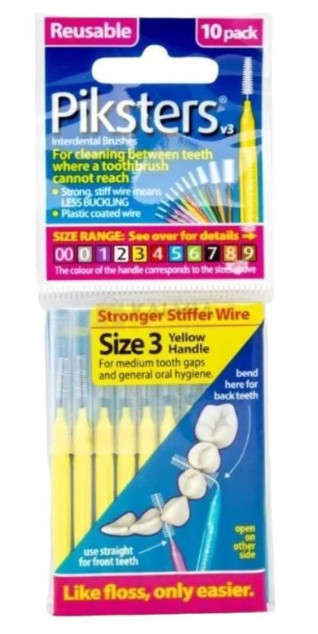 Miért olyan népszerű a Piksters? A rostszálak merevebbek, mint bármely más terméknél, így azok nem deformálódnak és nem hajlanak el. Jobb minőségű nylon rostokat használnak a hosszabb élettartam érdekében. A páciensek akár 2 hétig is használhatják ugyanazt a kefét, szemben más kefék 3-4 napos élettartamával. Jóval kisebb helyen elfér, mint a legtöbb hasonló termék - a kisebb terjedelem azt jelenti, hogy kevésbé észrevehetőek a zsebben vagy a pénztárcában, és kevesebb az eldobandó műanyag. Az emberek sokkal többet használják, ha kéznél van.