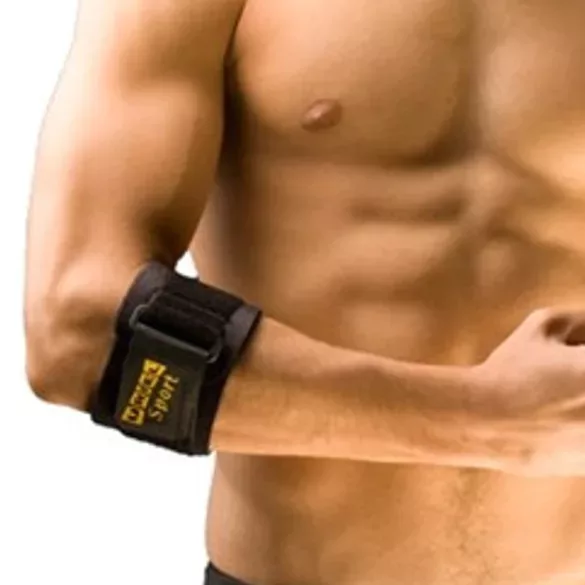 Leírás:Támogatást nyújt a laterális(oldalsó) és mediális (középső)lágy szöveteknek a könyöknél. Javallatok: oldalirányú Epicondylitis (tenisz könyök) és mediális Epicondylitis (golfozók könyöke) bántalmak esetén.
