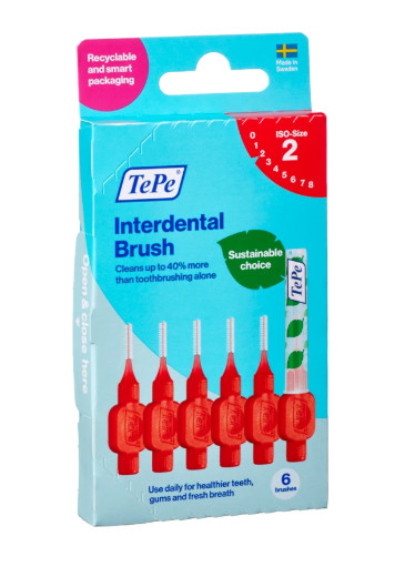 A fogszuvasodás és az ínygyulladás egyik fontos megelőző lépése a fogközök rendszeres tisztítása. A TePe Original fogköztisztító kefék hatékonyan elérnek olyan szűk résekbe is, ahová a hagyományos fogkefék nem férnek be. Mindennapos használatukkal segítenek Önnek a hagyományos fogkefével végzett tisztításhoz képest akár 40%-kal több lepedéket eltávolítani.