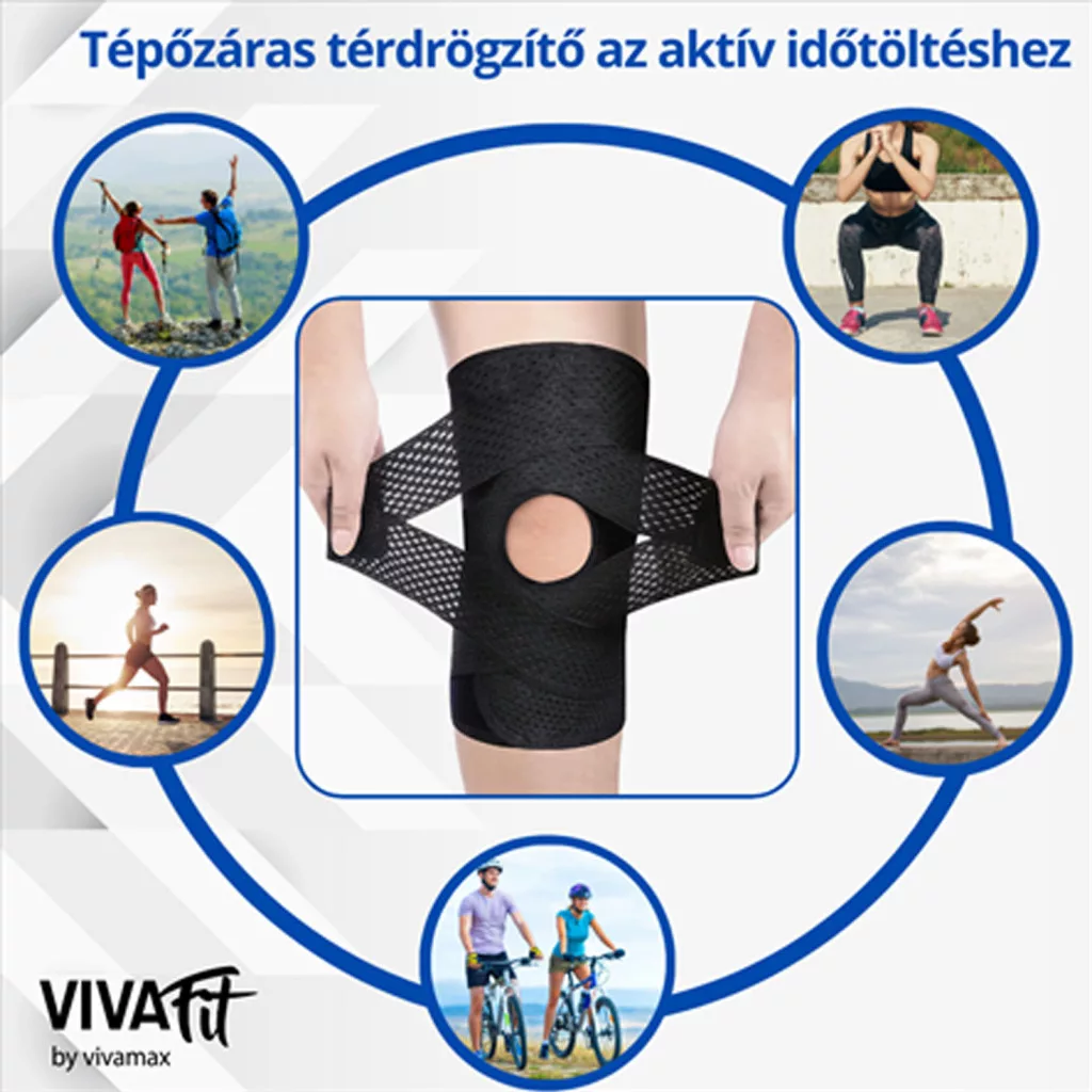 - A tépőzáras füleket átlapolva rögzítse a térdkalács alatt és felett.