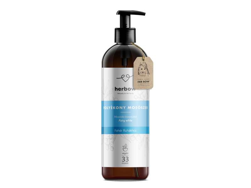 HERBOW FOLYÉKONY MOSÓSZER FEHÉR RUHÁKHOZ - FRISS ILLAT 1 LKiszerelés: 1000 ml (33 mosás - 1mosás: 8 pumpálás)Folyékony mosószer fehér ruhákhoz - friss illat, mosódió kivonattal és bioenzim felhasználásával. Kimagasló mosóhatás növényi összetevőkkel, szövetkárosodás nélkül! A fehér pamutból készült darabokhoz (ingek, terítők, törölközők, ágyneműk) kifejlesztett, friss illatú Herbow folyékony mosószer az alapos tisztító hatás mellett kíméletes a textíliához és a bőrhöz. Nem tartalmaz optikai fehérítőt. Az erősebben szennyezett és strapabíróbb ágyneműt, törölközőt vagy konyharuhát 60°C fokon moshatjuk.Mi az a mosódió?A mosódió a szappanfélék családjába tartozó, Délkelet-Ázsiában őshonos szubtrópusi fa, a mosódiófa (Sapindus mucorossi) termése. Az évszázadok óta mosásra, tisztításra használt mosódió héja természetes szappant (szaponint) tartalmaz, amely a vízben oldódva megköti a szennyeződéseket, zsírokat és nem engedi vissza a textilszálak közé.Hogyan használjuk?A mosószert az ajánlott adagolásnak megfelelő mennyiségben adja a mosószer adagoló kamrájába, vagy adagoló golyóval helyezze a dobba. (Pumpás kiszerelés esetén 8 pumpálásnyi). Ne öntse közvetlenül a ruhákra! A lehető legalacsonyabb hőmérsékleten mosson. Az erősen szennyezett ruhákat mossa magasabb hőmérsékleten (max. 60 °C-on ). Amosószer adagolásánál vegye figyelembe a vízkeménységet, a szennyeződését mértékét és a mosógépbe helyezz ruhák mennyiségét. A mosógép gyártója által ajánlott mértékben töltse meg a mosógépet. Színes ruhákhoz ajánljuk a Herbow folyékony színes ruhákhoz nevű terméket. Gyapjú és selyem termékek mosására nem ajánlott! Használat előtt felrázandó!A termék további jellemzői:Nem tartalmaz mesterséges illatanyagokatNem tartalmaz mesterséges színezéketNem tartalmaz optikai fehérítőtMegóvja a színeket a kifakulástólTermékeinkben kizárólag Fenntartható Pálmaolajat (RSPO) használunk Bőrkímélő összetevőkVegán formulaÖSSZETEVŐK:5-15% anionos felületaktív anyagok, <5% nemionos felületaktív anyagok, szappanTartalmaz: illatszerek (limonene, hexyl cinnamal, hexyl salicylate, amyl cinnamal, coumarin), tartósítószerekEgyéb összetevők: mosódió kivonatTOVÁBBI TUDNIVALÓK A TERMÉKRŐL:Minőségét megőrzi: Lásd a csomagoláson feltüntetett időpontig.Tárolás: Száraz, hűvös helyen tárolandó. Gyermekektől távol tartandó!